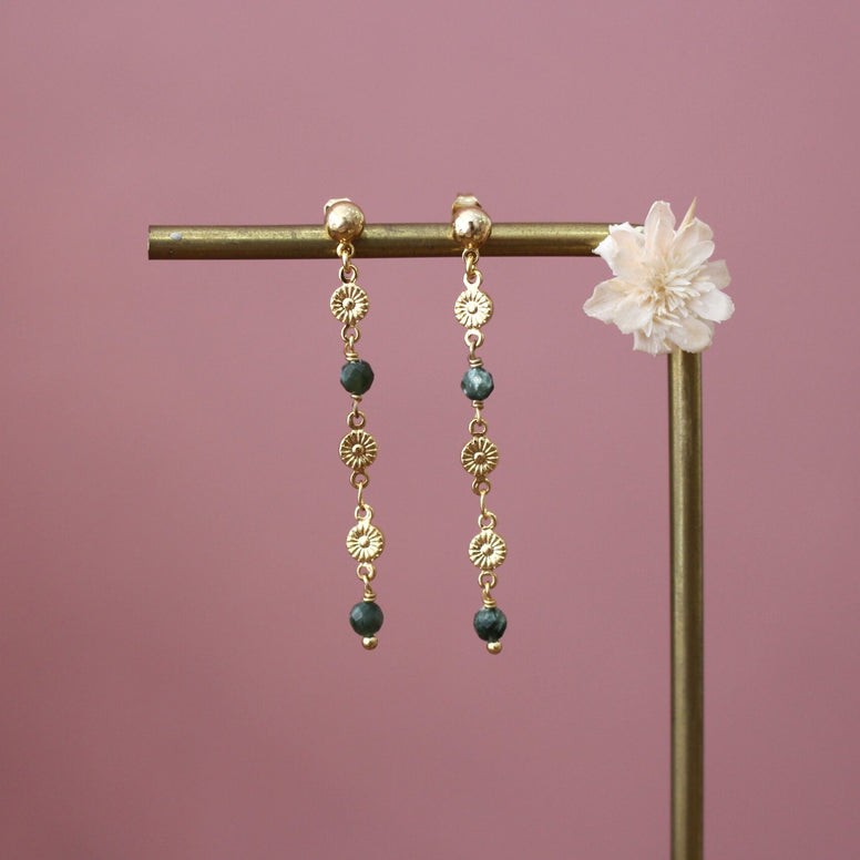 Petits motifs floraux alternés avec de petites perles 4 mm facettées en seraphinite.