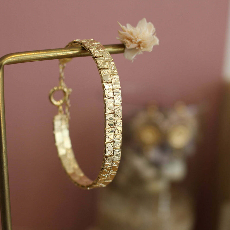 En tant que créatrice de bijoux faits main, j'ai imaginé cette création et nous l'avons entièrement assemblée par nos soins à Cherbourg. La dorure a été réalisée par un artisan partenaire spécialisé à Paris.