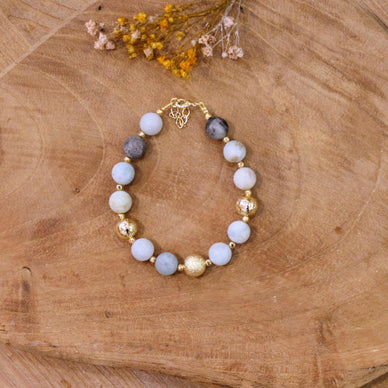 En tant que créatrice de bijoux faits main, j'ai imaginé cette création et l'ai entièrement assemblée par mes soins à Cherbourg. La dorure a été réalisée par un artisan partenaire spécialisé à Paris.