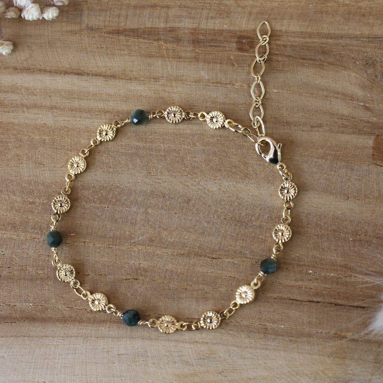 bracelet pour femme en laiton doré à l'or 24 carats et ornés de perles en séraphanite
