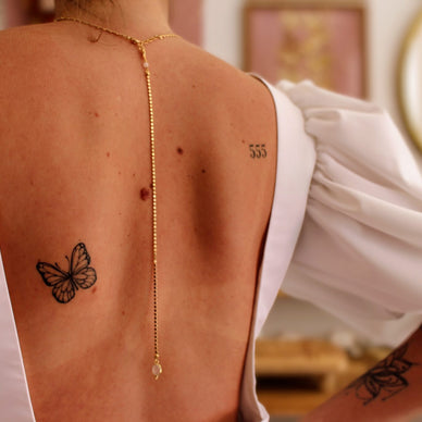 - 17 cm : pour une touche discrète au creux du dos ( vous pouvez vous rendre compte de la longueur de la chaine courte sur la troisième photo