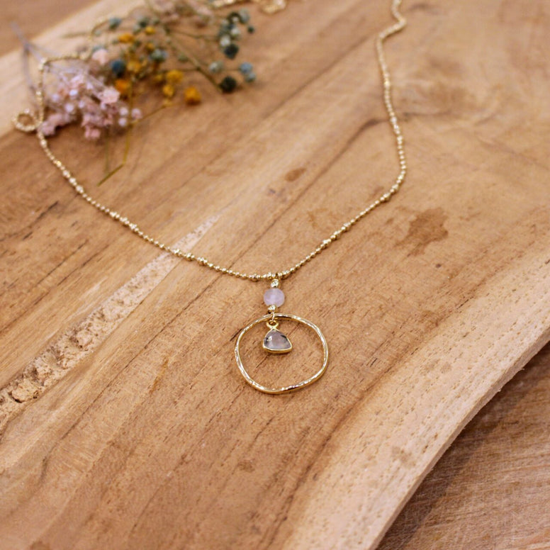 pendentif doré pierre naturelle labradorite collier fin idée cadeau femme