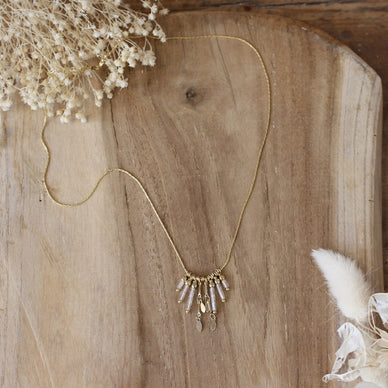 En tant que créatrice de bijoux faits main, j'ai imaginé cette création et l'ai entièrement assemblée par mes soins à Cherbourg. La dorure a été réalisée par un artisan doreur partenaire à Paris.