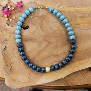 Perles en céramique artisanale grecque (bleu clair & bleu nuit)