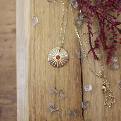 La pierre centrale sur la médaille est une cornaline. Pierre de la joie et du dynamisme.
