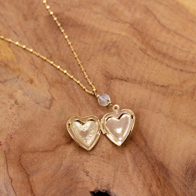 Collier Médaillon Cœur doré en laiton soigneusement doré à l’or 24 carats (1 micron) par un artisan doreur français.